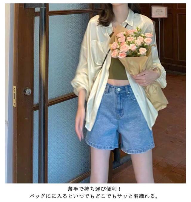 | 暑い夏にも冷房対策にもピッタリなUVカットシャツ 魅力的な春夏カラー!涼感がある肌ざわりなので夏場でもご使用いただけます。 薄手で持ち運び便利!バッグにに入るといつでもどこでもサッと羽織れる。 なカラーとシルエットで、ワンピースやキャミソール等様々な服と合わせやすい1着です。 これからの季節、冷房対策や日焼け対策に大活躍してくれること間違いなしのアイテムです。 | |