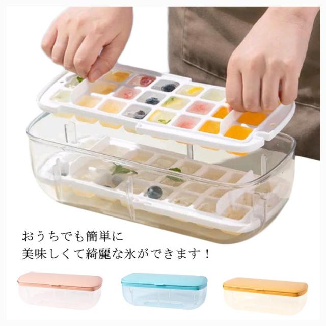 蓋付き 保存ケース 大容量 製氷皿 2段 ビール アイストレー製氷皿 冷蔵庫専用 製氷器 製氷 簡単に取り出す 漏れ防止 冷たい飲み物 ジュース お茶やお酒用氷が作れる キッチン用品 透明氷 方型氷