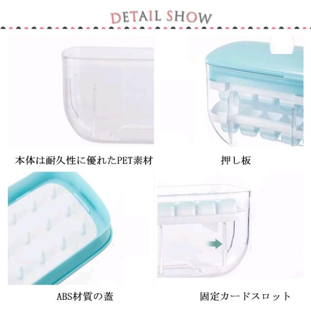 | おうちでも簡単に美味しくて綺麗な氷ができます! お好みによりクオリティの氷ができます! 暑い夏に氷を作るときに欠かせないアイテム! 便利なデザインなので、どんなに長い時間に冷蔵しても、簡単に取り出すことができます。 蓋を閉めて押すとすべての氷を簡単に取り出せます! 製氷はもちろん、氷の収納ボックスとしても使用できます。 | |