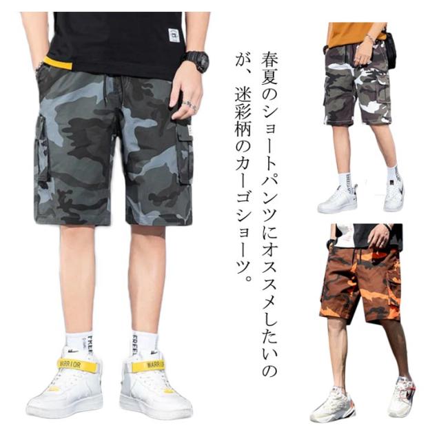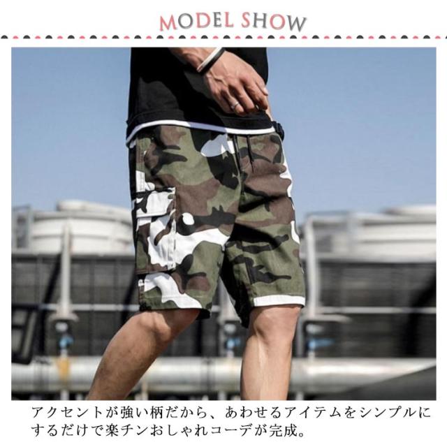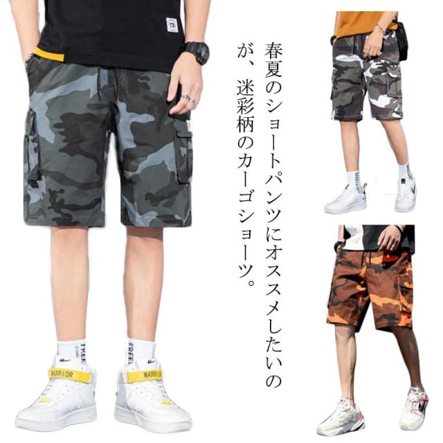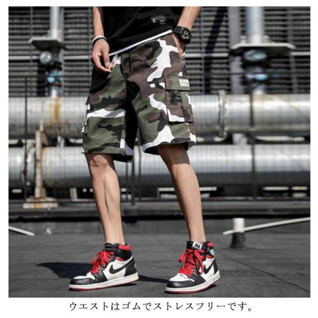 メンズ ズボン 送料無料 コットン 迷彩柄 膝上丈 男の子 送料無料 大きいサイズ 短パン ウエストゴム ゆったり ボトムス カーゴパンツ きれいめ カジュアル ビーチ ハーフパンツ