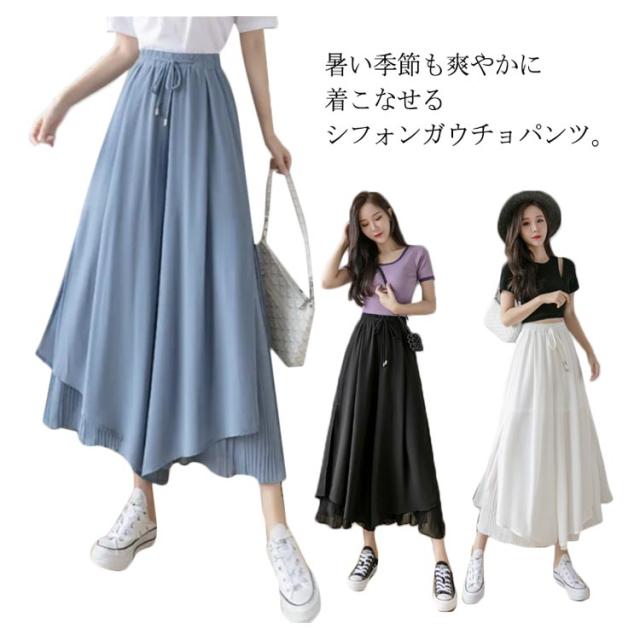 ガウチョ フレアパンツ ワイドパンツ スカーチョ レディース 魅力的 シフォン サイズ豊富 ウエストゴム 薄手 体系カバー 涼しい 夏服 エレガント ふんわり ガウチョパンツ