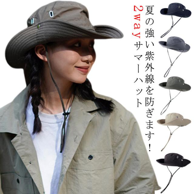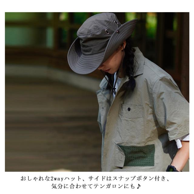 | 夏の強い紫外線を防ぎます!2wayサマーハット 安心のUVカット仕様、日差しが強い日のお出かけもこれひとつで安心。 おしゃれな2wayハット、サイドはスナップボタン付き、気分に合わせてテンガロンにも♪ あご紐が付いているので風が強い日や、自転車に乗る日でもラクラク。 シンプルで落ち着いた色合いは男女兼用のハットです。 ビーチや釣り、トレッキング、キャンプなどアウトドアに最適なアイテムです。 | |
