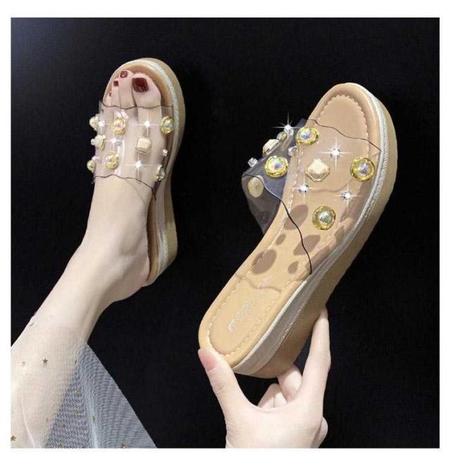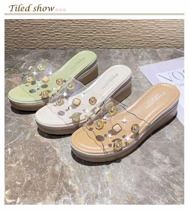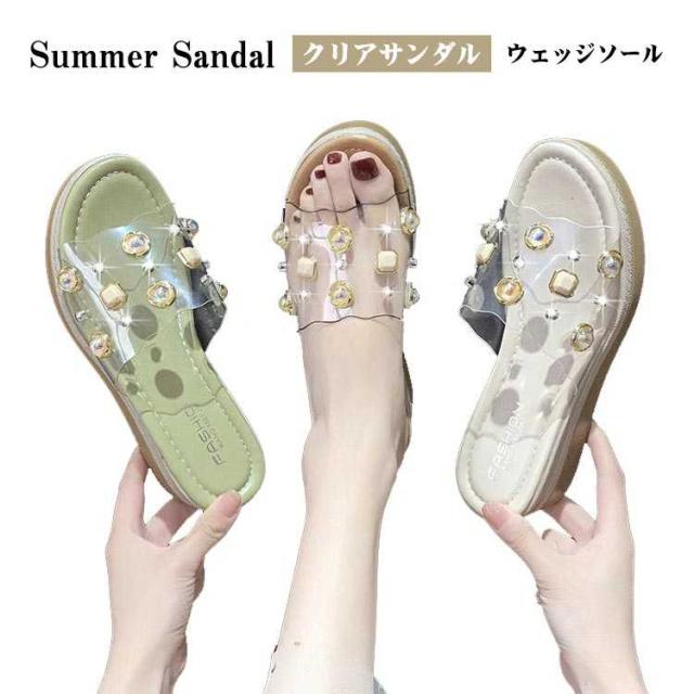 ビジュー サンダル レディース 美脚 厚底 コンフォートサンダル クリアサンダル 厚底サンダル スリッパ サンダル 透明サンダル サンダル 5cmヒール ベルト サンダル 春夏 サンダル クリア ストラップ サンダル ウェッジソール