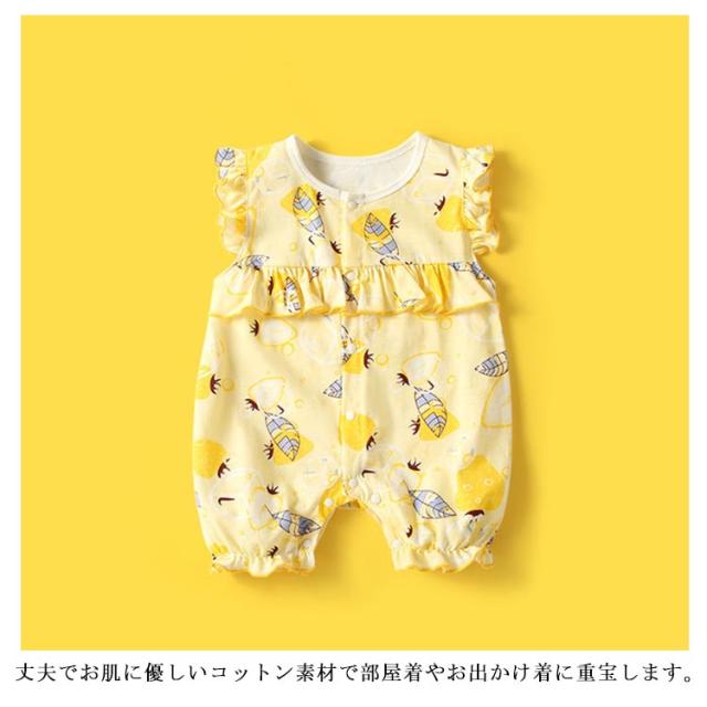 夏服 女の子 ロンパース 赤ちゃん 前開き フリル 綿 送料無料 ベビー服 キッズ服 かわいい 柔らかい 子供服 新生児 幼児 半袖 通園 カバーオール
