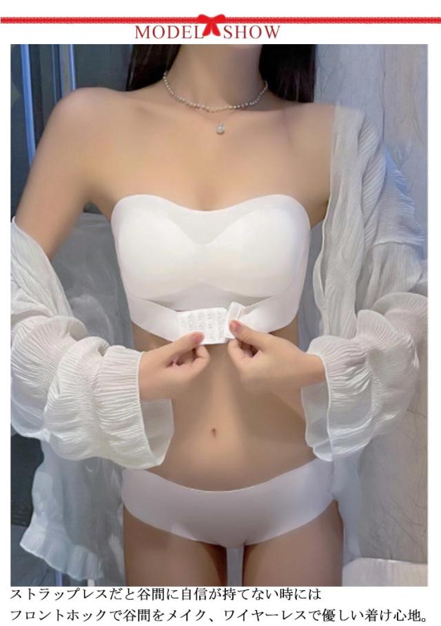 育乳 フロンドフック 2点セット 前開き ブラ ノンワイヤーブラ チューブトップ 育乳 垂れ防止 ストラップレス バストアップ チラ見防止 ブラジャー 盛り 谷間 脇高 ブラ