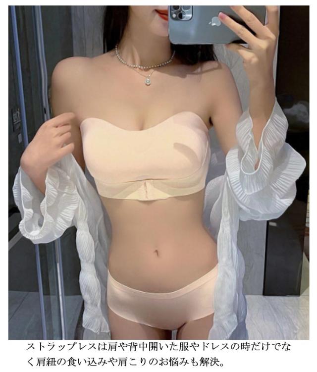 | ずれにくいのに盛れるストラップレスブラ。 ストラップレスだと谷間に自信が持てない時にはフロントホックで谷間をメイク、ワイヤーレスで優しい着け心地。 シームレスで響きにくく、綺麗なシルエットにカップ部分は柔らか素材で通気性があり汗ばむ季節も快適。 ストラップレスは肩や背中開いた服やドレスの時だけでなく肩紐の食い込みや肩こりのお悩みも解決。 オフショルダー、キャミソール、どんな装いにも合わせやすく、幅広いシーンで大活躍するストラップレスブラジャー。 ストラップ付きなので、普通のブラジャーにも変身可能! | |