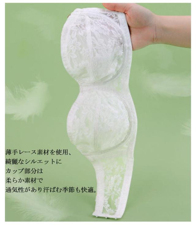 大きいサイズ ストラップレス 紐なしブラ 垂れ防止 ブラ ブラジャー ブラ 胸を小さく見える 夏 ワイヤー入り レースブラ ダンス 下着 薄手 結婚式 ドレス ずれない