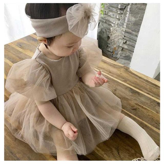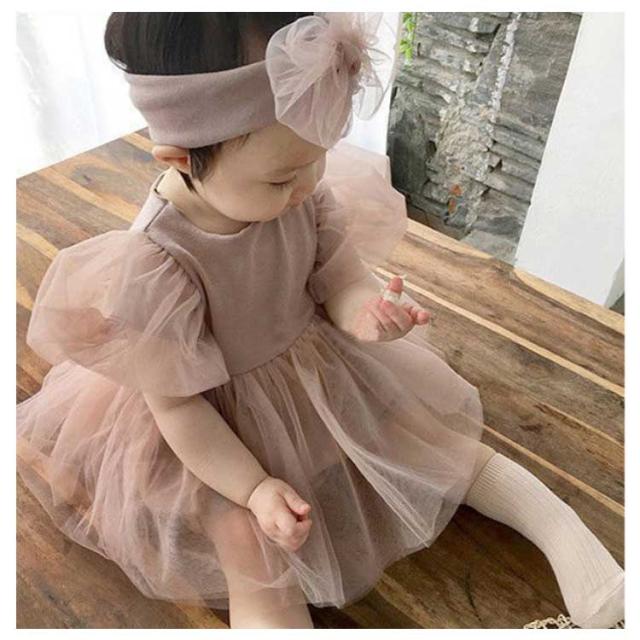 半袖 ベビーワンピース 入園式 100日 新生児 チュール ヘアバンド付き ベビードレス セレモニードレス ロンパース 赤ちゃん ドレス ベビー服 フォーマル 結婚式 お宮参り 出産祝い 七五三 女の子