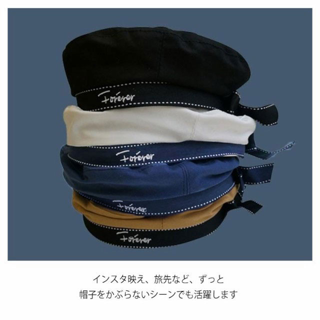 | セーラー風のデザイン、春夏にピッタリのベレー帽。 選べる全4色、しかも軽くて型くずれしにくく、視覚的に小顔に見えデザイン。 折りシワがつきにくいので、たたんで持ち運びOK! カジュアル派もリッチ派も被るだけでトレンドスタイルに、いろんなお洋服と相性が良い。 ディリーファッションにちょっとした変化をつけたい時とかにもいいアイテムです。 インスタ映え、旅先など、ずっと帽子をかぶらないシーンでも活躍します。 | |