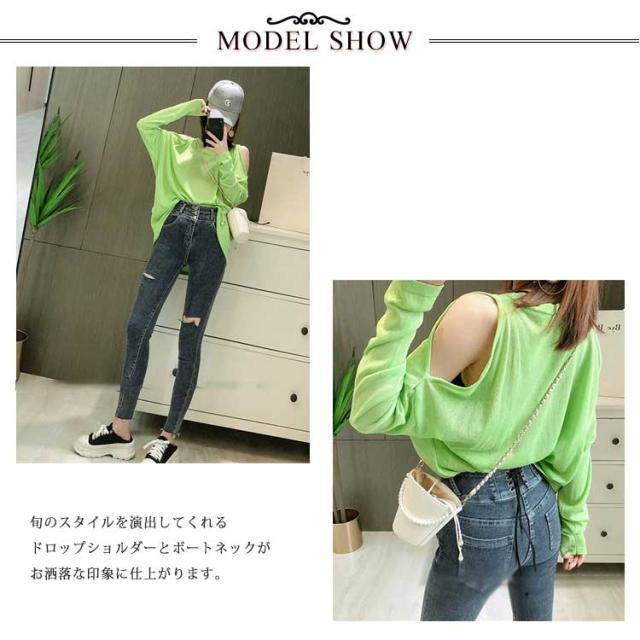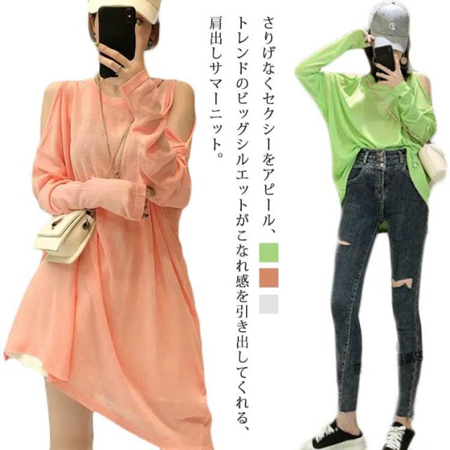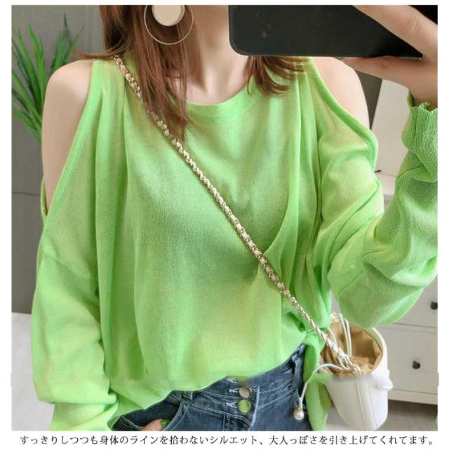 ニットトップス サマーニット 肩出しトップス 接触冷感 レディース カットソー UVカット 送料無料 薄手 カジュアル 春夏トップス プルオーバー 肩出しトップス ストリート 大きいサイズ Tシャツ