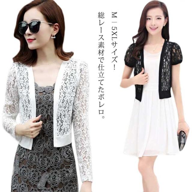 透け感 選べる袖丈!サマーカーディガン ボレロ おしゃれ カーディガン 透かし編み 半袖 七分袖 長袖 フラワーレース 総レース サマー 羽織り 送料無料 UVカット 春夏 M−5XL レースカーディガン