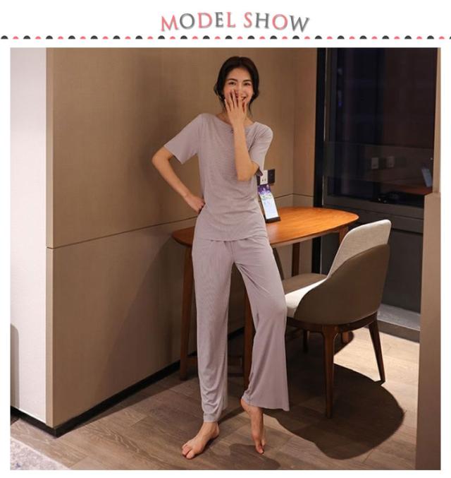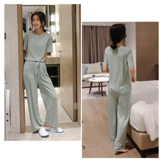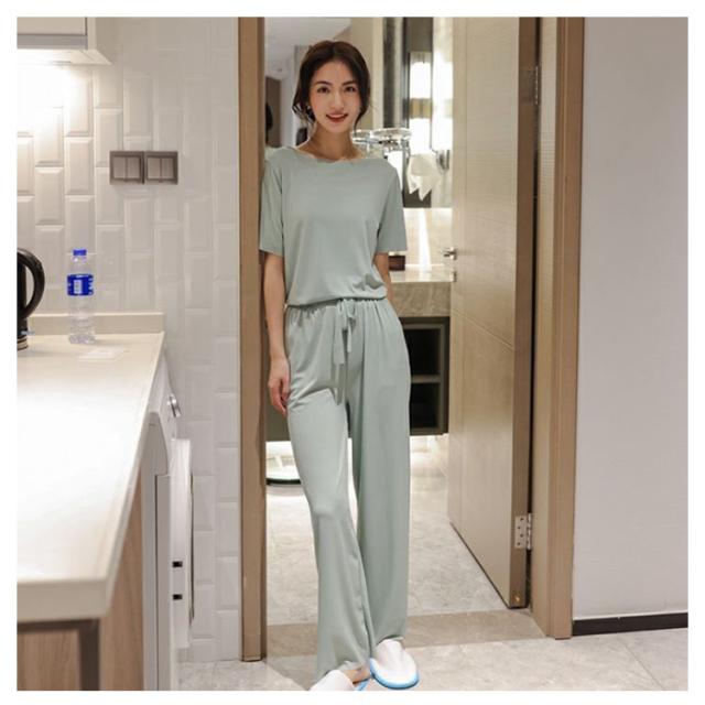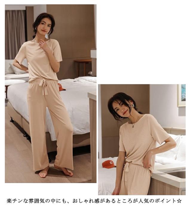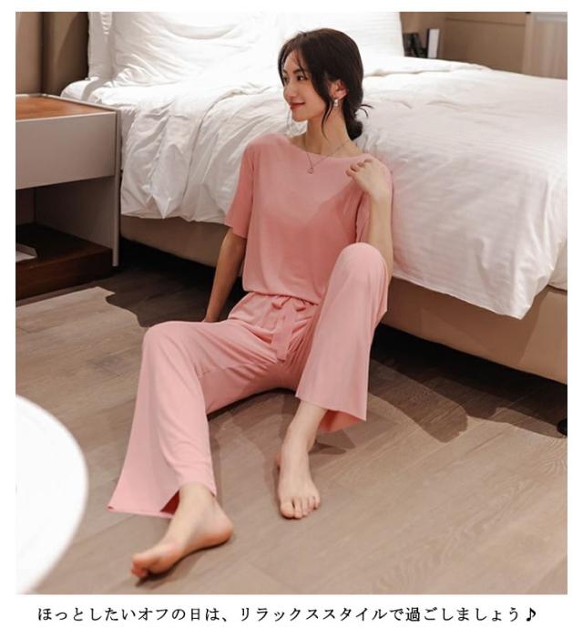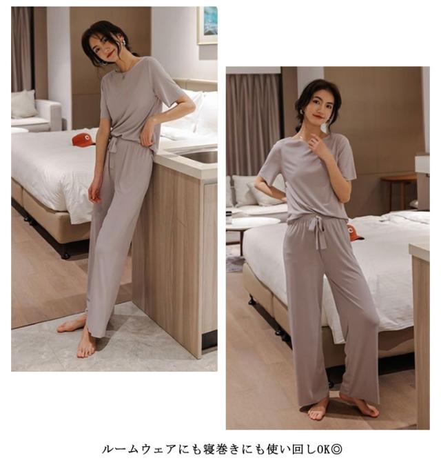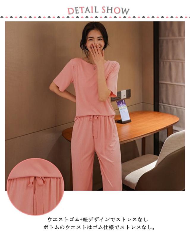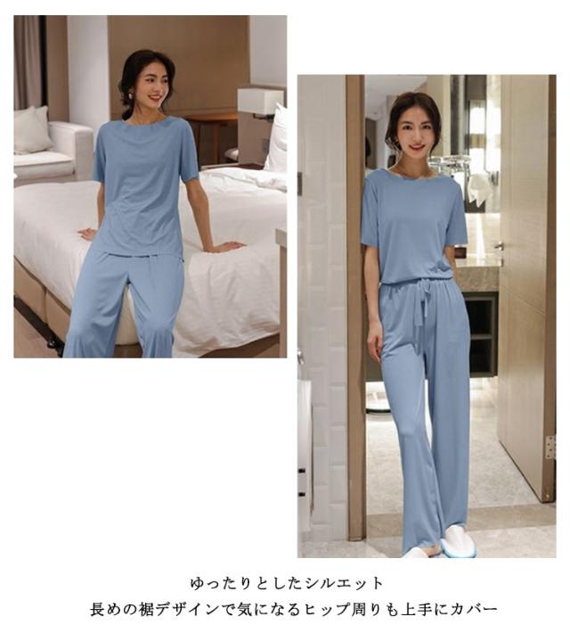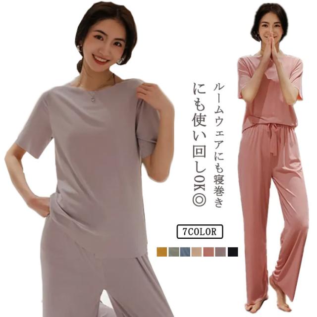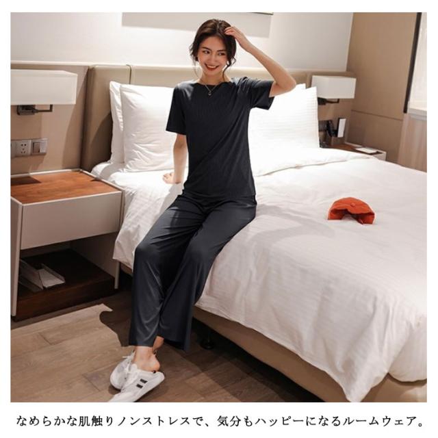 婦人用 部屋着 パジャマ 薄手 半袖トップス 夏 ひんやり 長ズボン ウエストゴム ルームウェア 冷感素材 上下セット レディース 涼しい 通気性 柔らかい 接触冷感