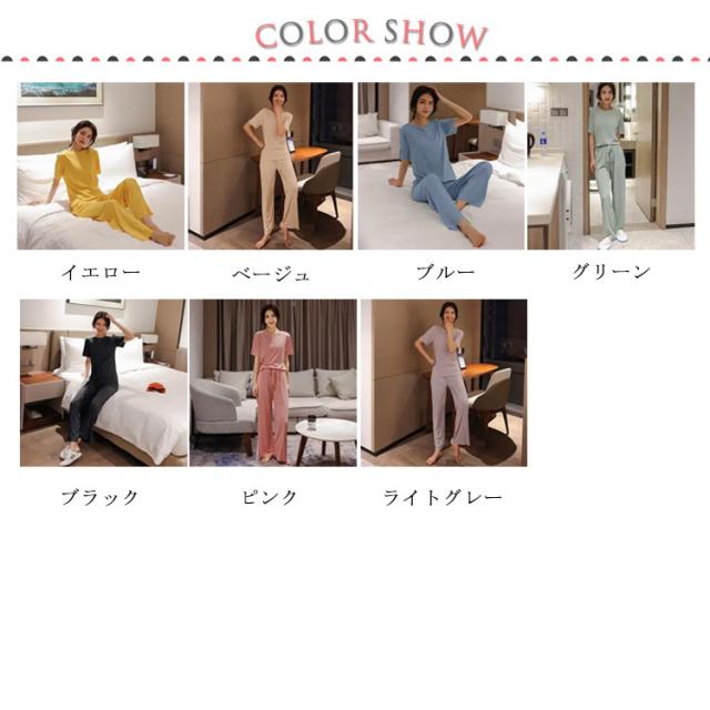 | ルームウェアにも寝巻きにも使い回しOK◎ なめらかな肌触りノンストレスで、気分もハッピーになるルームウェア。 ボトムのウエストはゴム仕様でストレスなし。 楽チンな雰囲気の中にも、おしゃれ感があるところが人気のポイント☆ ほっとしたいオフの日は、リラックススタイルで過ごしましょう♪ | |