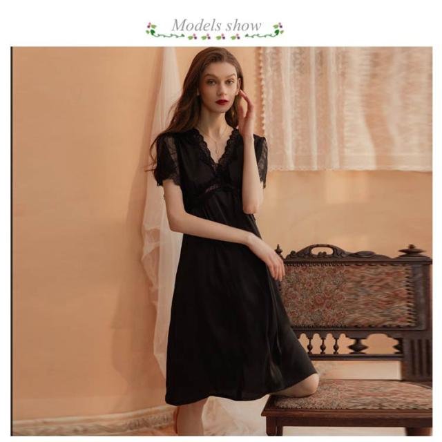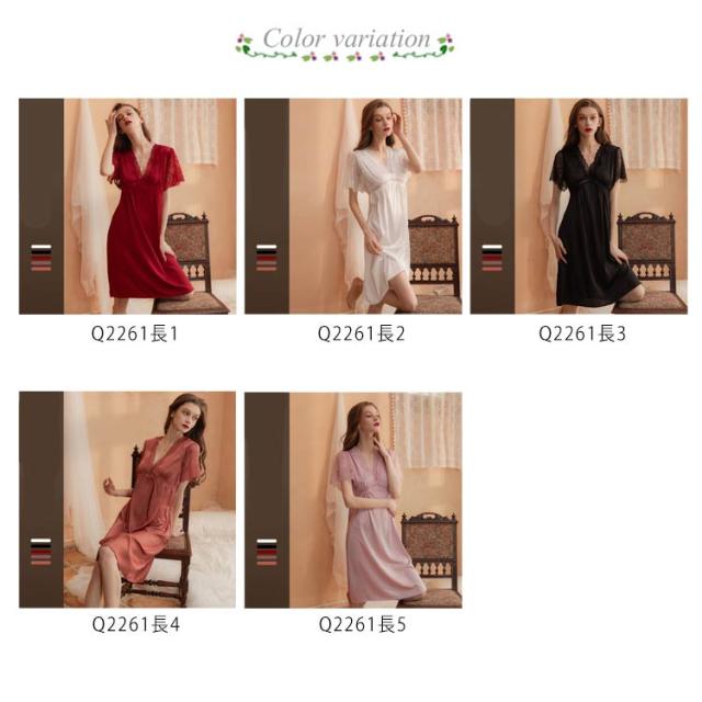 サテンタッチ レディース セクシー 春 下着 シースルーレーススリーブ ルームウェア 部屋着 ワンピース パジャマ 夏 ランジェリー 寝間着 可愛い M L ランジェリー