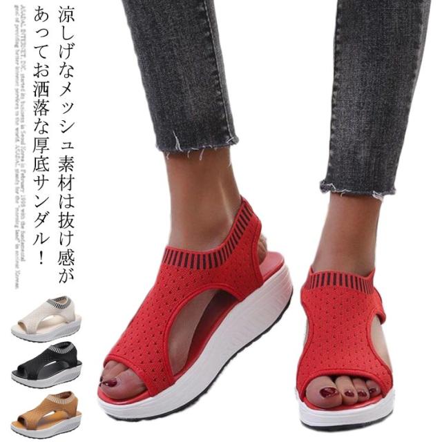 メッシュ サンダル レディース スニーカー サンダル 涼しい おしゃれ スポーツサンダル 厚底 スタイルアップ スポーティー 疲れない キャンプ アウトドア 海 スポサン 靴 シューズ 大人 上品 お洒落 歩きやすい