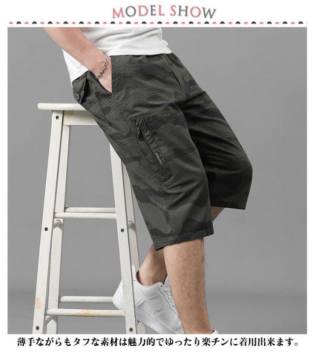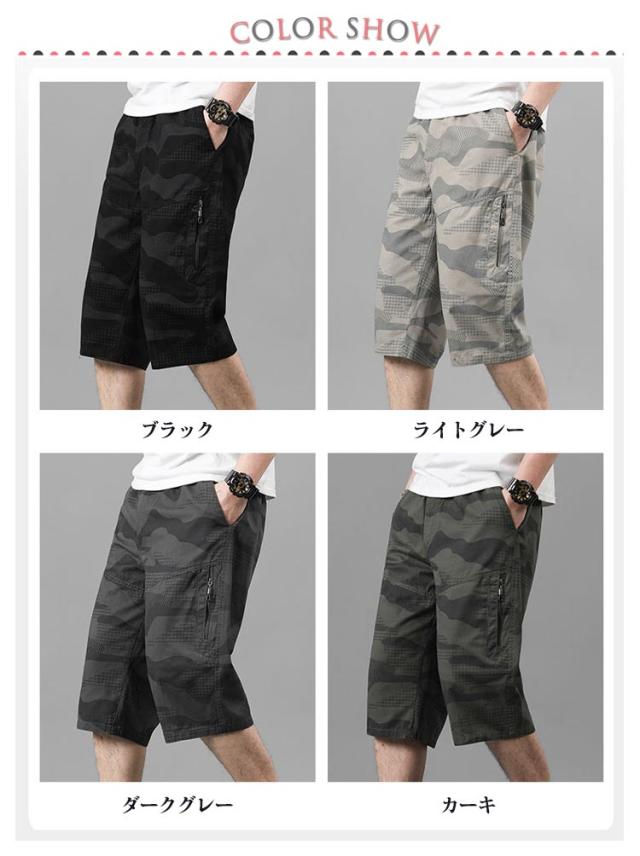 春夏 送料無料 ハーフパンツ 迷彩 ポケット 7分丈 リゾート カーゴパンツ 膝下丈 チノパン 大きいサイズ イージーパンツ 作業着 ゆったり 作業ズボン 男性用 スポーツ 運動 メンズ