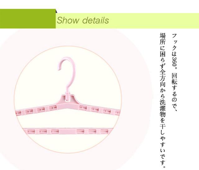 | 大判サイズタオルも身幅広いも対応できる伸縮ハンガー5本セット 衣類はもちろん、伸縮式なので大きめのバスタオルも楽々干せます。 左右にスライドさせれば、幅約42〜69.5cmまで伸縮するので、大判タオルや脇部分の乾きにくい衣類を干すこともできます。 フックは360°回転するので、場所に困らず全方向から洗濯物を干しやすいです。 両端は洗濯物をしっかり止めるクリップがついています。滑って落ちる心配がありません。 強度に優れたPP素材を採用するので日焼けも心配なく長くご使用いただけます。 | |