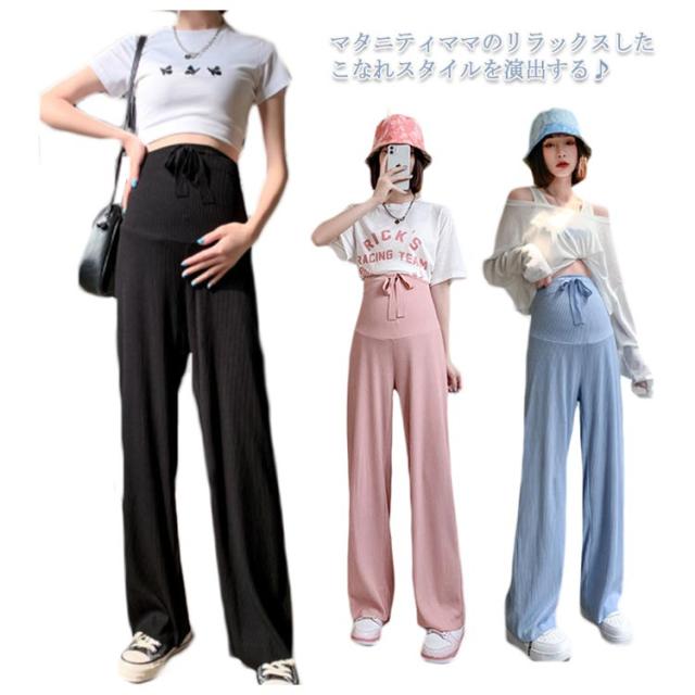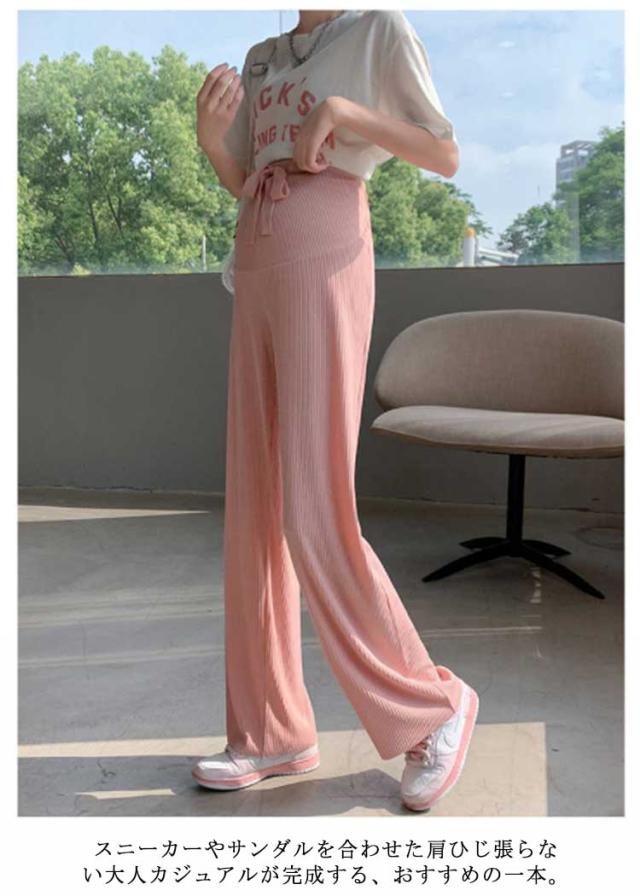 産前 ワイドパンツ ルームウエア マタニティ マタニティズボン 接触冷感 春夏 ボトムス 部屋着 調節可能 送料無料 リラックス 薄手 ストレート カラーパンツ 妊婦服 産後 リブ