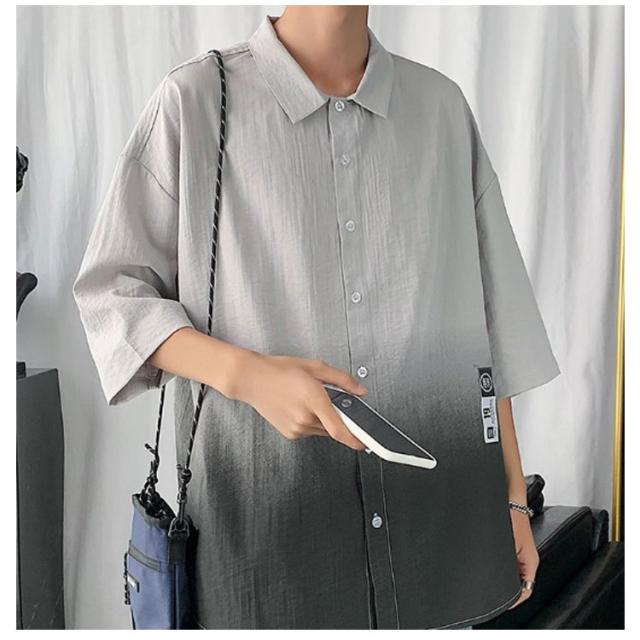 メンズ カジュアルシャツ メンズ 涼しい シャツ 春夏 メンズシャツ 半袖シャツ 夏 サマー 韓国 七分袖シャツ ファッション 接触冷感 グラデーション L XL 開襟シャツ