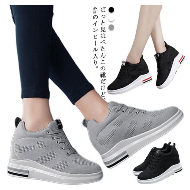 脚長効果 厚底靴 軽量 疲れにくい 厚底シューズ シークレットシューズ 身長アップ 美脚 インヒールスニーカー 厚底スニーカー 通気 滑り止め ヒールイン 歩きやすい ウォーキングシューズ レディース
