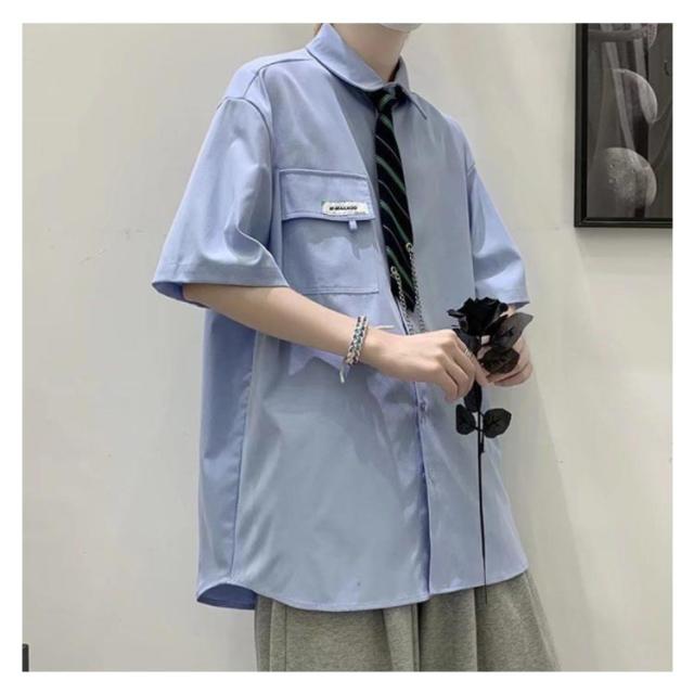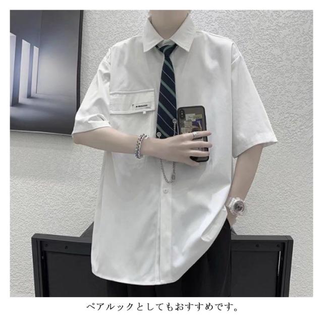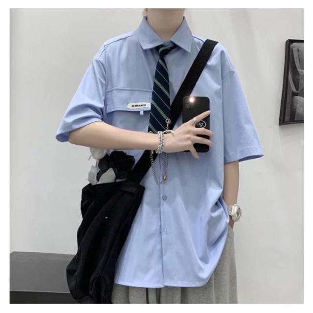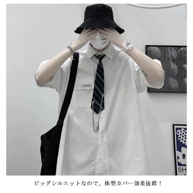かっこいい 学院風 半袖 ネックタイ付き 開襟シャツ カジュアルシャツ シャツ コスプレ 通学 コットンシャツ 2XL 韓国 ポケット付き M L XL メンズ