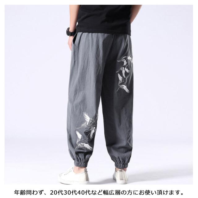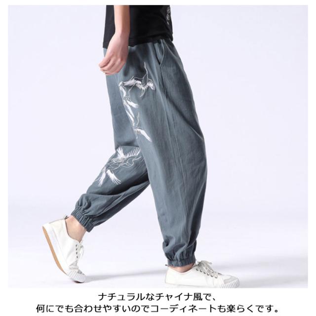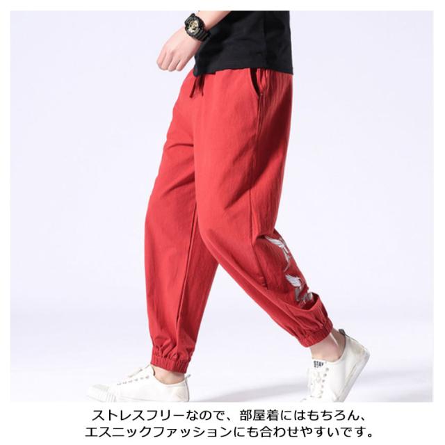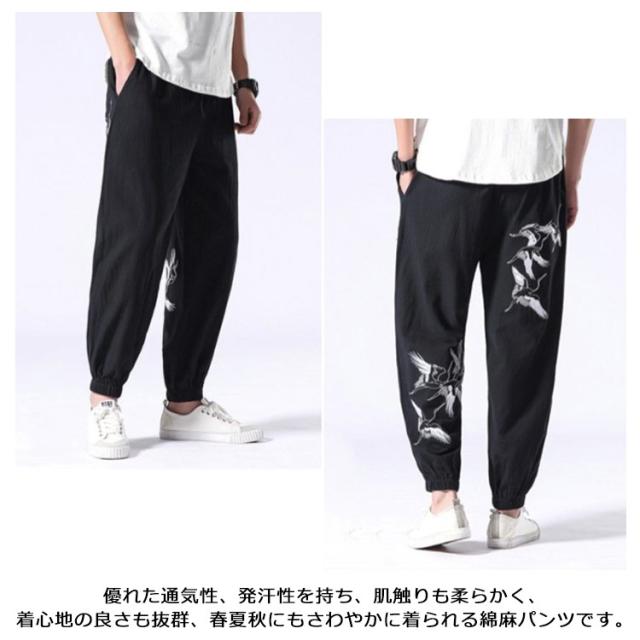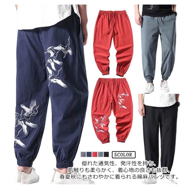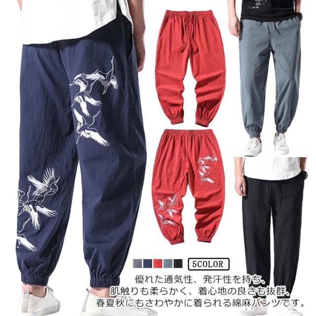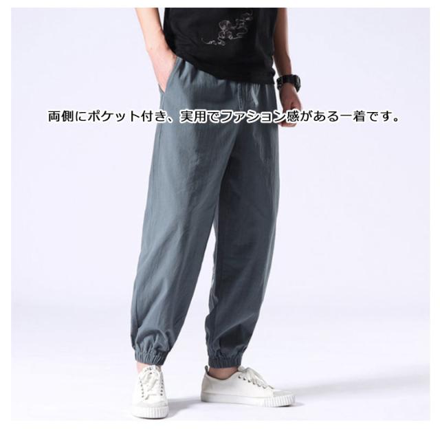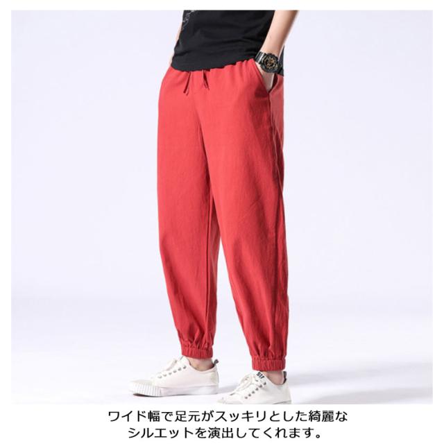 ロングパンツ 夏服 刺? パンツ ワイドパンツ 無地 リネン風 綿麻 サルエルパンツ 大きいサイズ 薄手 メンズ リネンパンツ ロングパンツ ナチュラル エスニック ゆったり