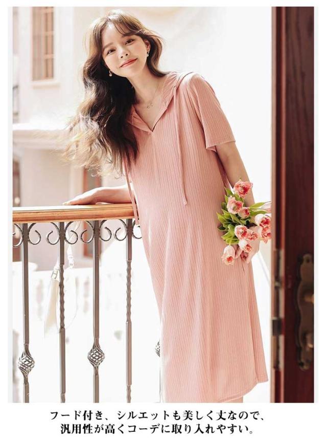 半袖 マタニティ ロングワンピース おしゃれ パーカーワンピース ワンピース ミモレ丈 お出かけ Vネック スリット 産前産後 フード付き シンプル XL M L プルオーバー