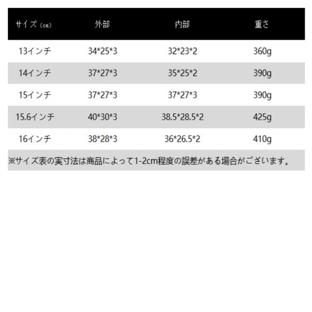 | サイズ | 13インチ 14インチ 15インチ 15.6インチ 16インチ |
