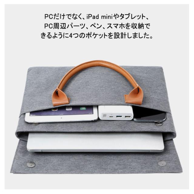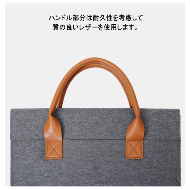 | 男性でも女性でも使いやすい、シンプルなデザインのノートパソコンケース ハンドル部分は耐久性を考慮して質の良いレザーを使用します。 防水、軽くて丈夫なポリエステル素材を採用しました、雨の日でもビジネスに集中! PCだけでなく、iPad miniやタブレット、PC周辺パーツ、ペン、スマホを収納できるように4つのポケットを設計しました。 余分なものはすべて排除し、すっきりな見た目と持ち運びやすさを追求しました。 シンプルなデザインは年齢・性別を問いあわずに誰でも簡単に使えます。 | |