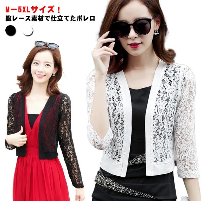 ボレロ フラワーレース カーディガン レースボレロ 送料無料 レースカーディガン 半袖 サマーカーディガン 七分袖 羽織り 透け感 長袖 おしゃれ 春 夏 M−5XL 総レース