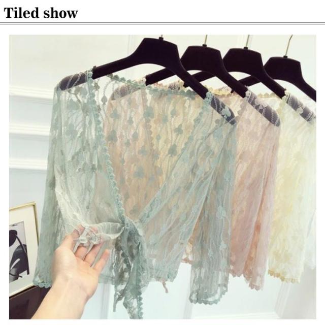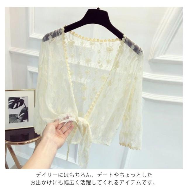 ショートカーディガン カーディガン 夏 ボレロ ショート丈 ショートボレロ ショール セクシー 九分袖 レディース 春 長袖 前結び レース 着?せ フェミニン シースルー