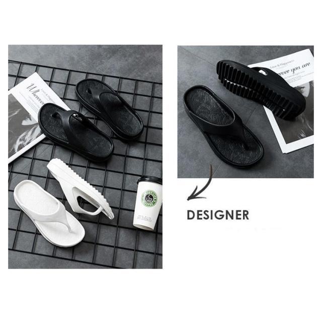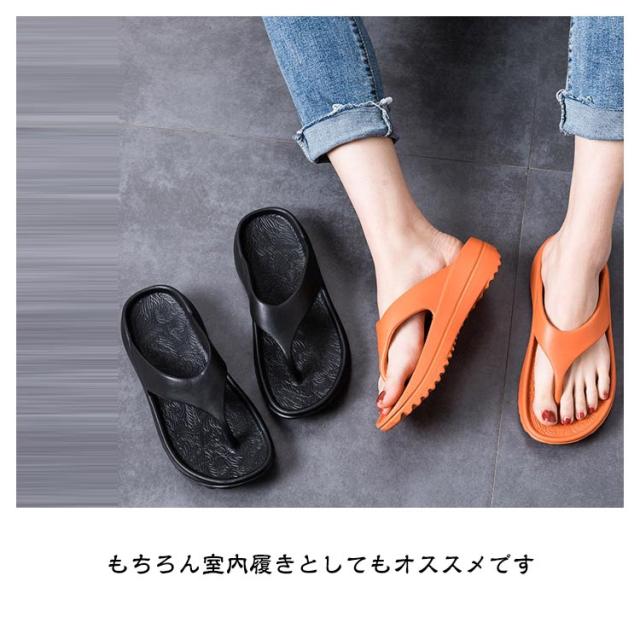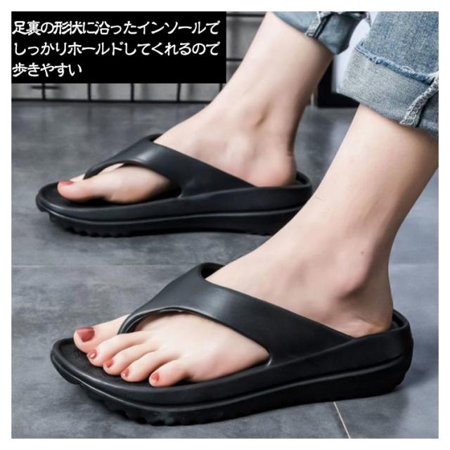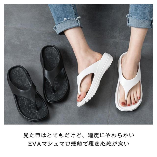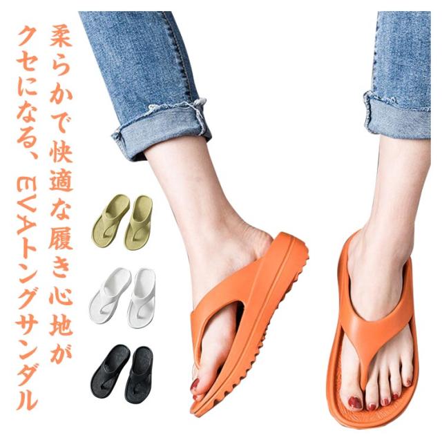 | 柔らかで快適な履き心地がクセになる、EVAトングサンダル。 見た目はとてもだけど、適度にやわらかいEVAマシュマロ感触で履き心地が良い。 足裏の形状に沿ったインソールでしっかりホールドしてくれるので歩きやすい。 ソールは厚めで歩いた時のクッション性がかなりいいので疲れにくい。 なデザインで、ビーチやちょっとしたお出かけにも最適。 もちろん室内履きとしてもオススメです。 | |