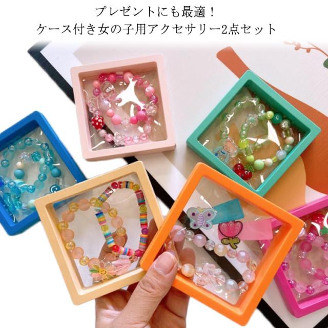 | プレゼントにも最適!ケース付き女の子用アクセサリー2点セット 子供が大好きな鮮やかでカラフルなデザイン♪ ゴムで繋がっているので簡単に着脱できます☆ 選べる6タイプで、いろんな組み合わせが楽しめます。 2枚セットで姉妹やお友達とのお揃いlookにもオススメ。 専用ポーチ付きでお届けしますので、お子様へのギフトにオススメです。 | |