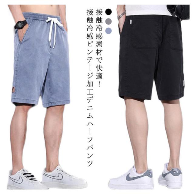 パンツ ひざ丈 サマーデニム 夏 ハーフパンツ 冷感デニム 冷感パンツ ジーンズ 接触冷感デニム 短パン ハーフパンツ デニム デニムパンツ ジーンズ ひざ丈 五分丈 ショートパンツ メンズ ストレッチ 春 春服 アイスパンツ