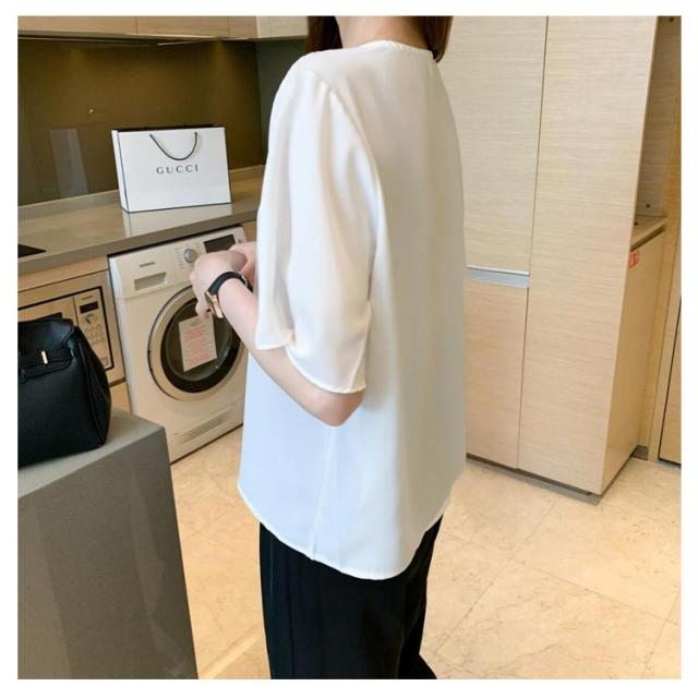 | 深めのVネックは女性らしさを上乗せしてくれます♪ プリーツスリーブが袖に透け感のあるシフォン素材は 夏の時期でも重たくならずヘルシーな肌見せが叶います◎ シンプルで着こなしやすく、マルチに活躍してくれる使いやすいデザインなので、 オフィススタイルにはもちろん、デニムと合わせてカジュアルダウンも◎ | |