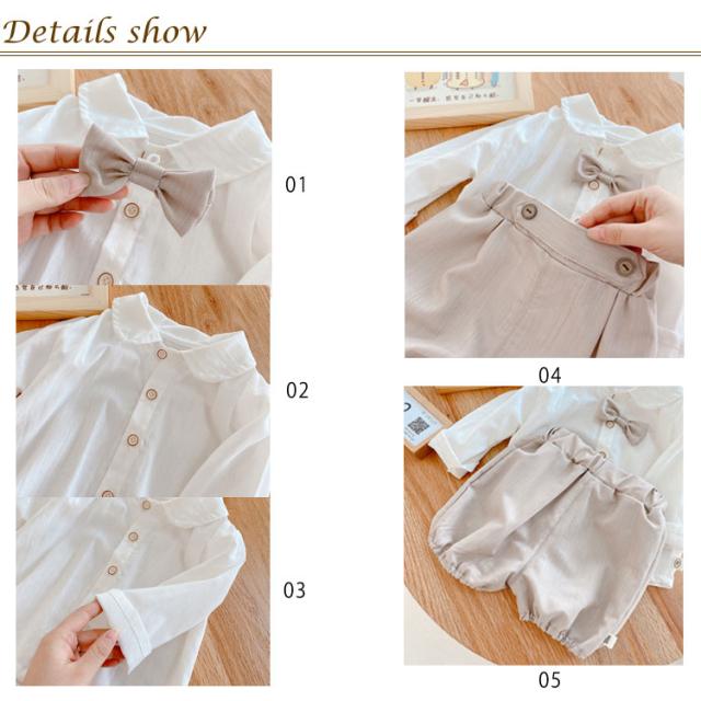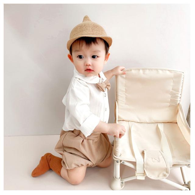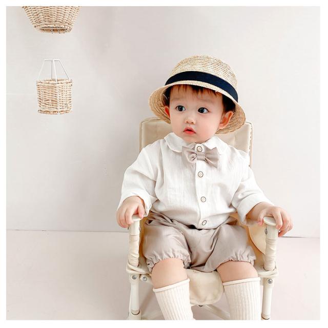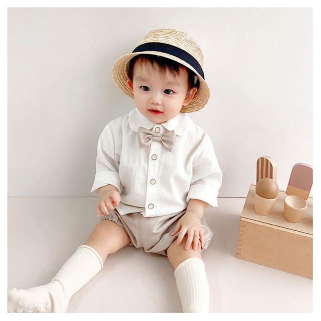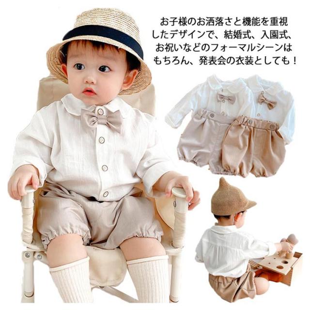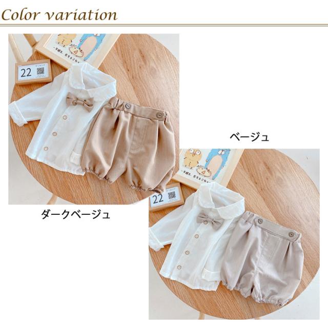 フォーマル 男の子 ベビースーツ 2点セット 子供服 無地 スーツ キッズ 半ズボン かぼちゃパンツ 長袖シャツ セットアップ 蝶ネクタイ スーツ 赤ちゃん 入園式 2点セット 七五三 卒園式 ロンパース