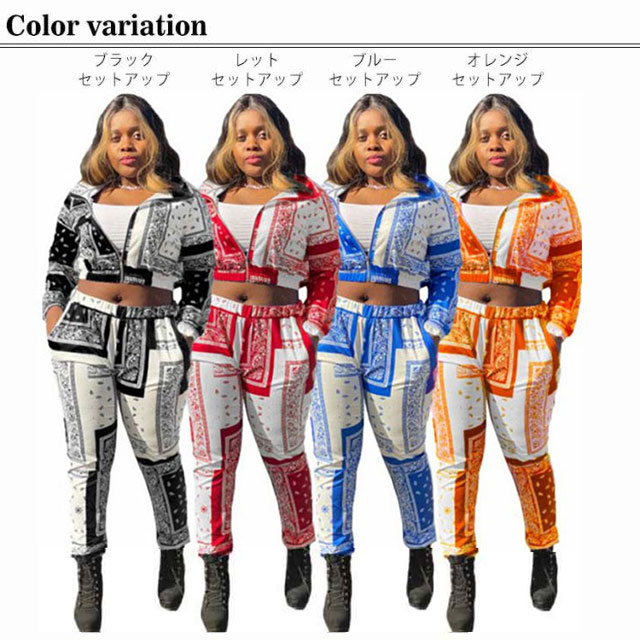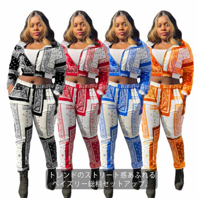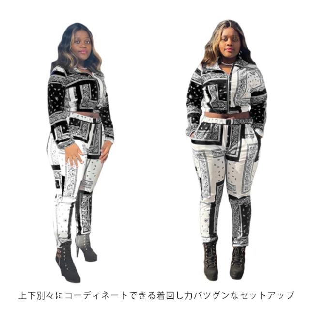 送料無料 黒 ダンス 衣装 2点セット セットアップ 上下セット ダンス ダンス衣装 バンダナ柄 白 派手 レディース ペイズリー 大きい S M L ストリートhiphop