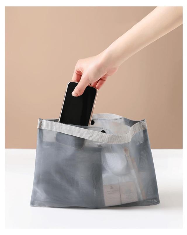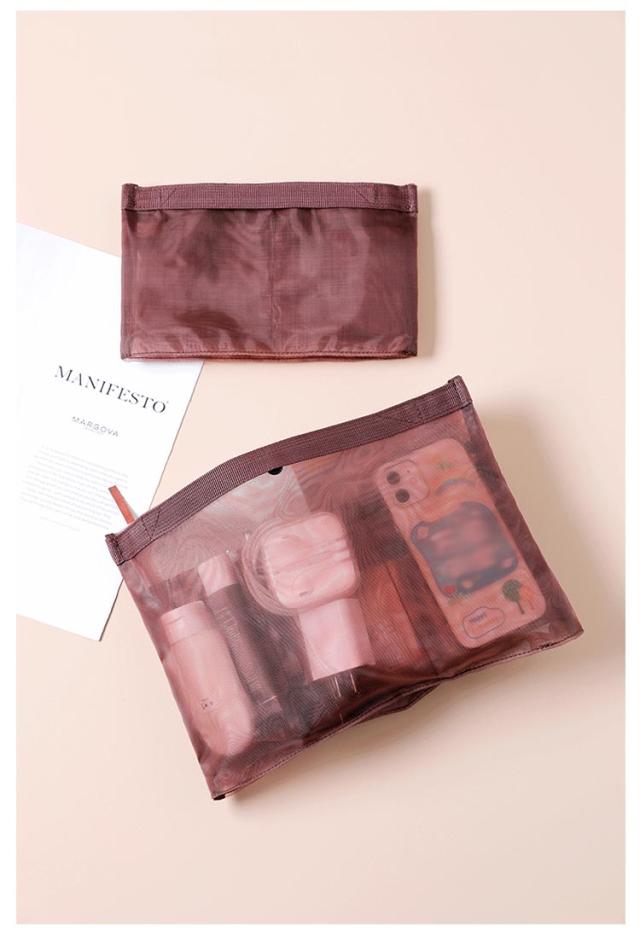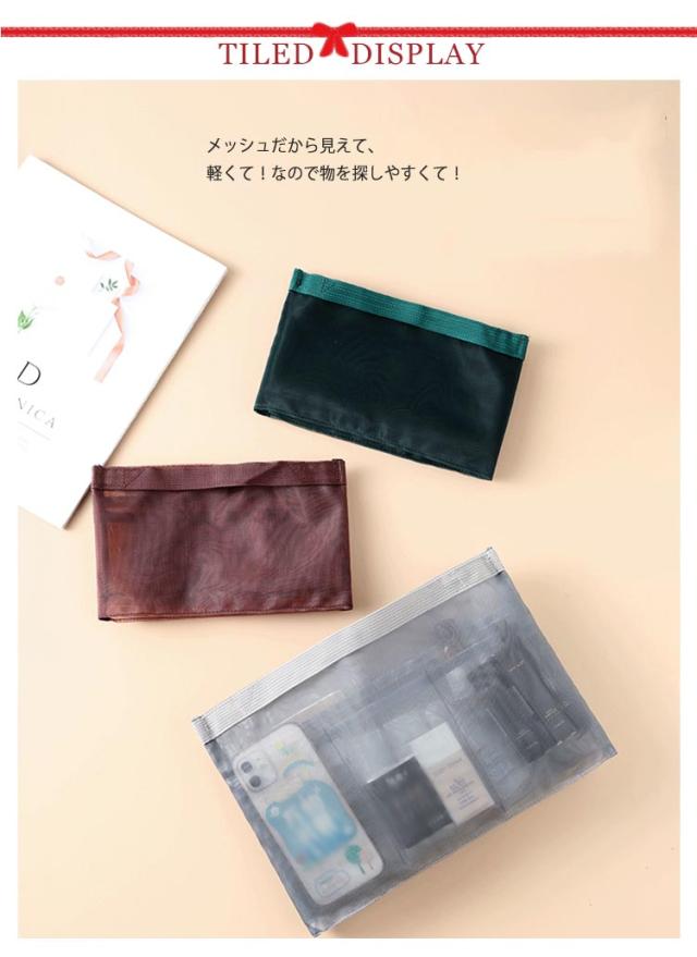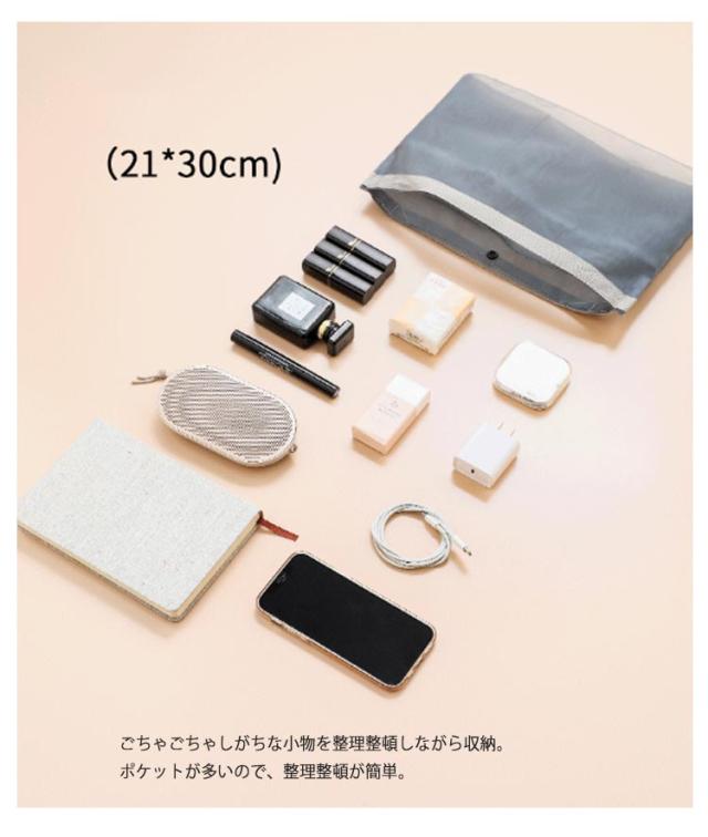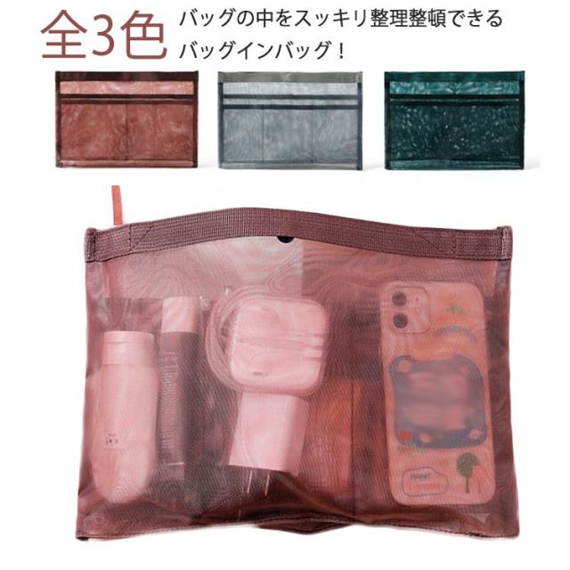 薄型 インナーバッグ バッグインバッグ 旅行 スナップボタン開閉式 小分け 取っ手付き メッシュ素材 コスメ 軽い 軽量 小物入れ 収納