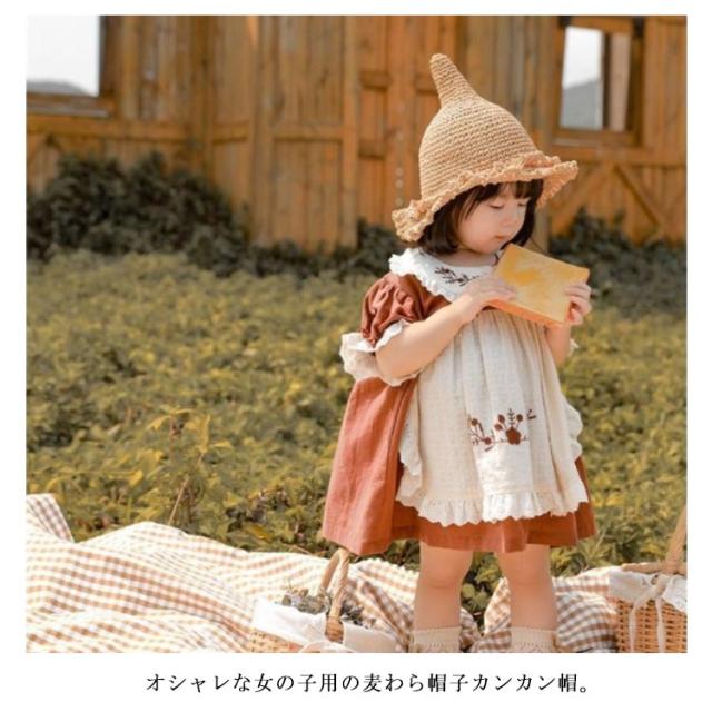 | かわいいシンプルな女の子用のカンカン帽!夏に大活躍! オシャレな女の子用の麦わら帽子カンカン帽。 シンプルなデザインでカンカン帽なので、かわいい服装にもボーイッシュな服装にも似合う | |