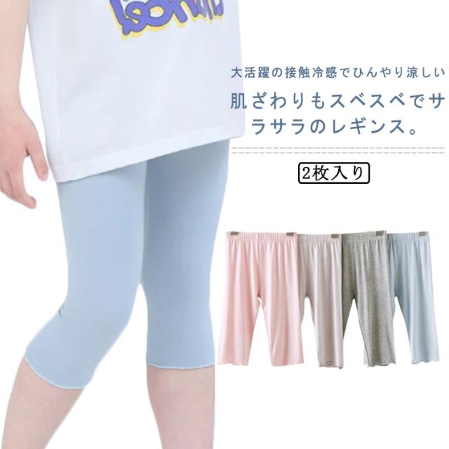 新体操 ジュニア シンプル キッズ 夏用 2枚入り!レギンス ガールズ スパッツ レギパン 綿 接触冷感 薄手 涼しい 7分丈 スパッツ 洗える 夏 UVカット 女の子 無地 ダンス 七分丈