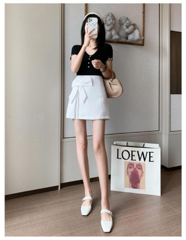 | フロントリボンときらきらとしたラインストーンがポイントになったショートスカート。 肌触りもよく、裏地もついているので夏場でもさらっと履いていただけます。 ハイウエストと綺麗なAラインがスタイルアップも期待できます。 1枚持っているだけでひと際目を惹く主役級アイテムです。 トップスにはコンパクトなサイズ感のものを合わせるとバランス良く着ていただけます。オーバーサイズのカットソーをインしたカジュアルなスタイリングもおすすめです。 | |