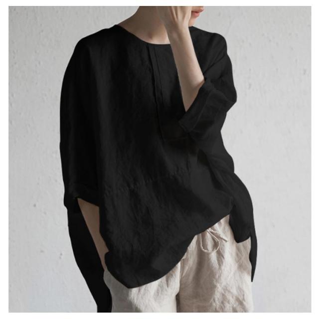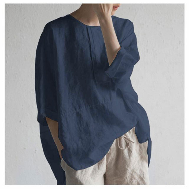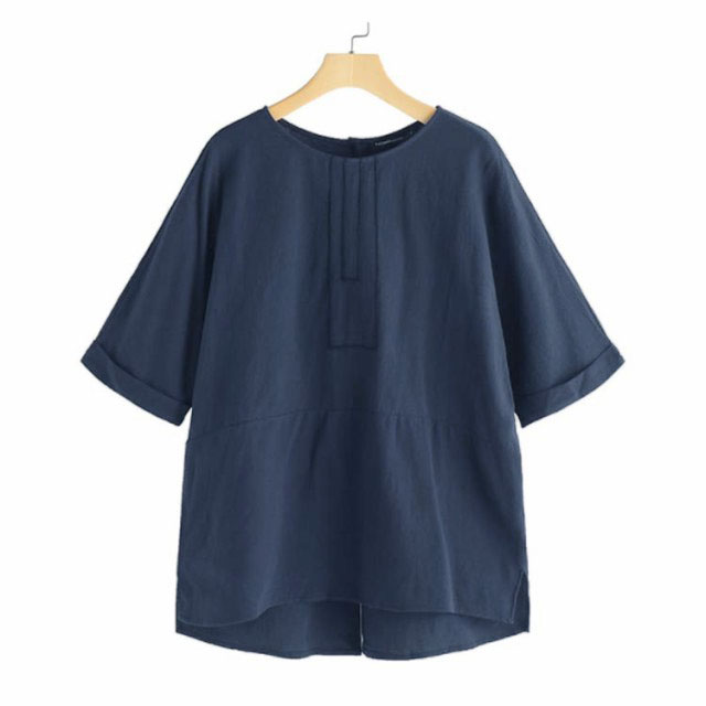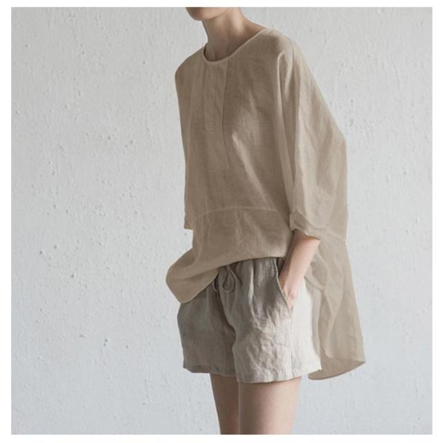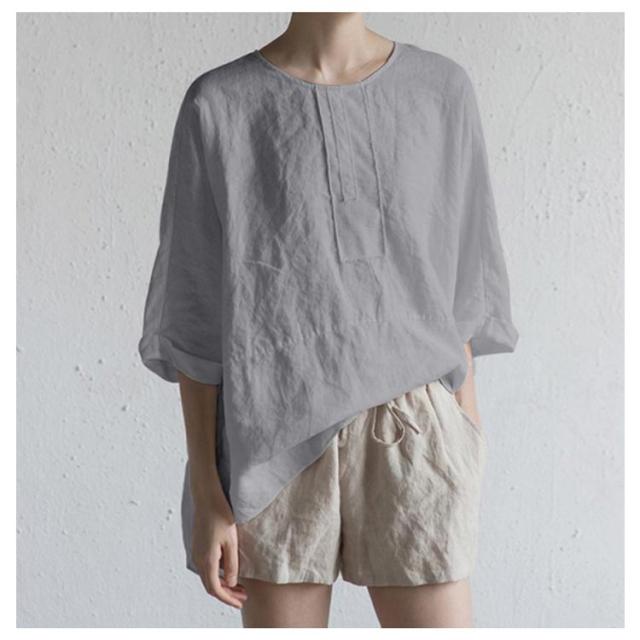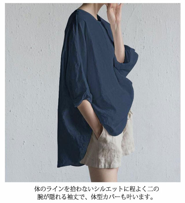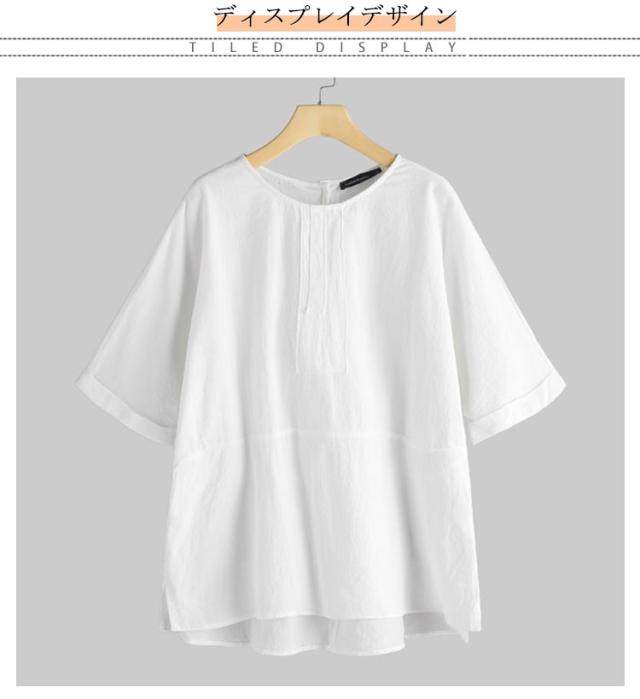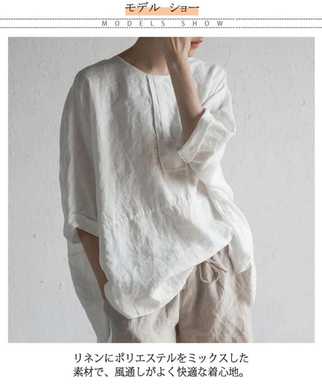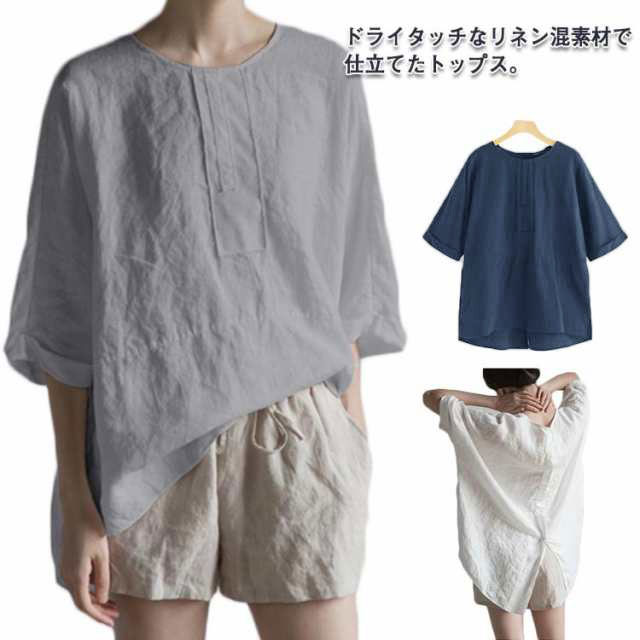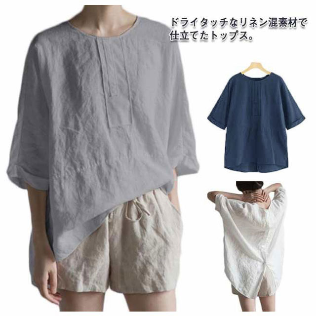 麻混 半袖 ゆったり リネンブラウス 夏物 薄手 春夏 レディース ブラウス リネンtシャツ リネン混 5分袖 クルーネック ナチュラル プルオーバー トップス 無地 速乾 大人 ナチュラル スリット カジュアル シンプル 大きいサイズ おしゃれ 通勤 春 夏 夏服 通気性