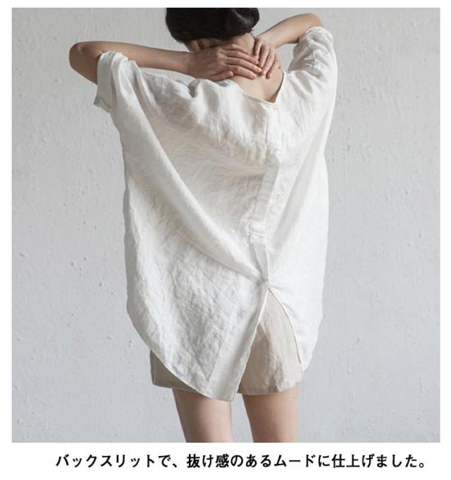 | ドライタッチなリネン混素材で仕立てたトップス。 リネンにポリエステルをミックスした素材で、風通しがよく快適な着心地。 体のラインを拾わないシルエットに程よく二の腕が隠れる袖丈で、体型カバーも叶います。 バックスリットで、抜け感のあるムードに仕上げました。 | |