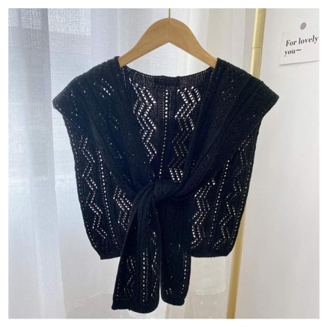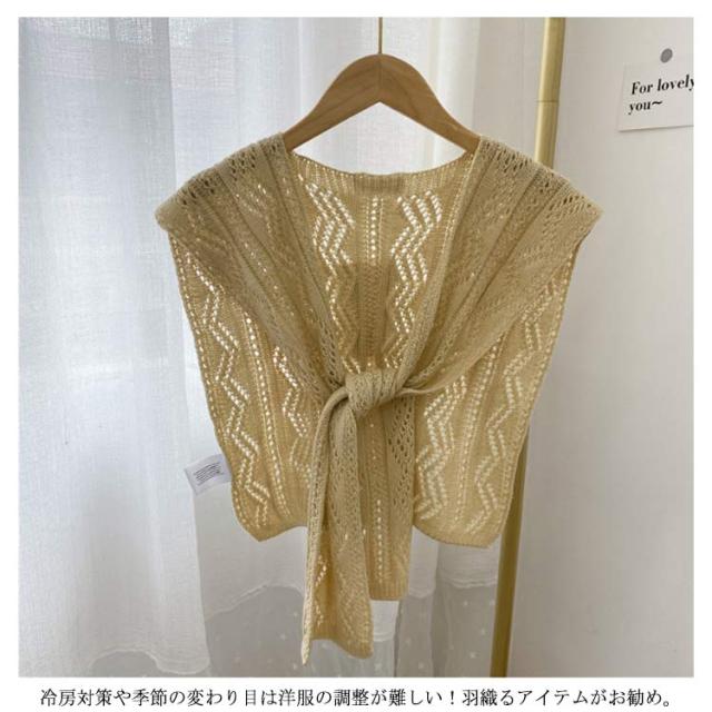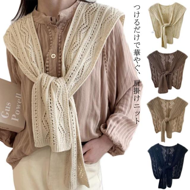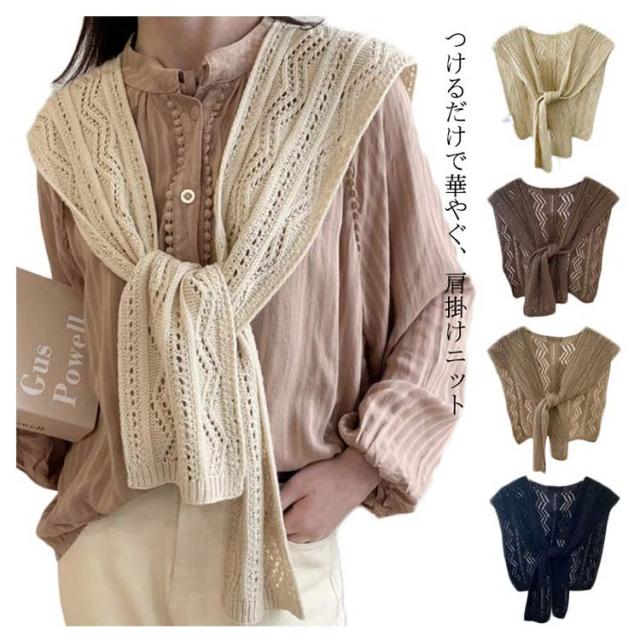 フェイクカーディガン ニット 【送料無料】肩かけニット 肩掛け カーディガン風 ショール ショルダーカーディガン 肩掛け専用ニット 薄手 重ね着風 肩マント カジュアル ナチュラル エレガント 冷房対策 シンプル 夏ニット