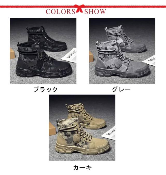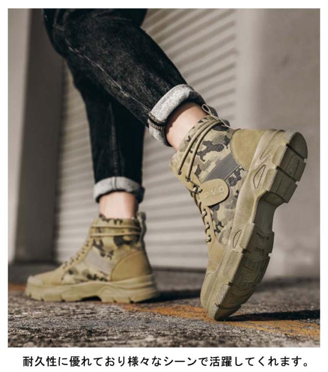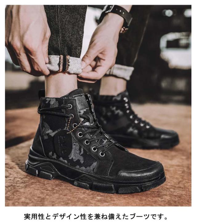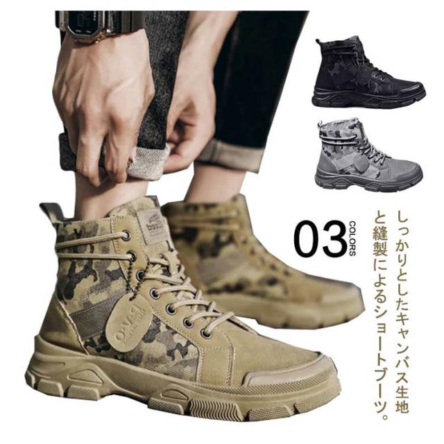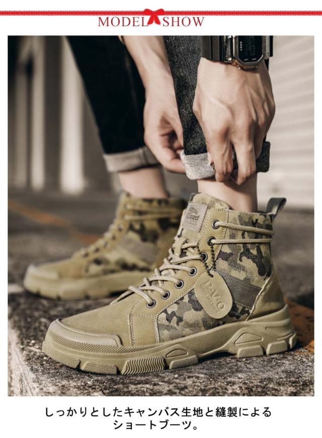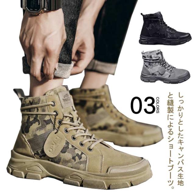 靴 メンズ ショートブーツ ハイカット キャンバス ショートブーツ シューズ カジュアル ワークブーツ ブーツ 滑り止め ローヒール 耐久性 アウトドア 迷彩柄