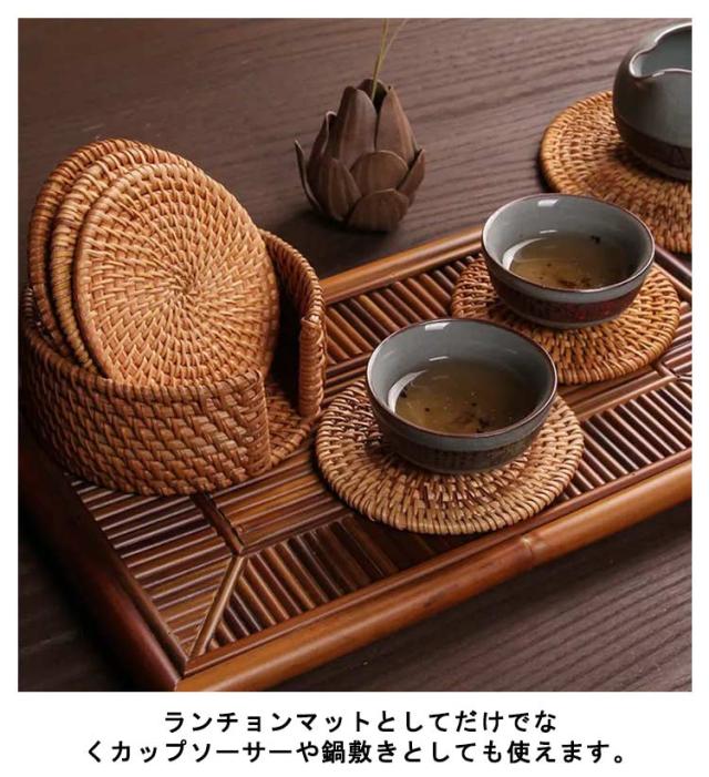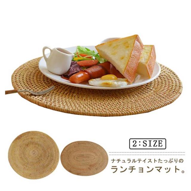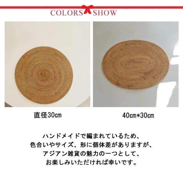手編み 丸形 オーバル ラタン 籐 鍋敷き 天然素材 楕円形 ラウンド型 丸形 手作り ナチュラル素材 ランチマット 選べる2サイズ 40cm*30cm 直径30cm プレイスマット