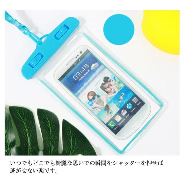 | お風呂、雨日、水泳の場合では大活躍するスマートフォン用の防水ケースです。 通話、写真、動画の撮影が可能! 雨日、ビーチ、温泉など場合ではスマホを防水カバーに収納したままで写真や撮影を気楽に遊んで楽しめます。 いつでもどこでも綺麗な思いでの瞬間をシャッターを押せば逃がせない楽です。 | |