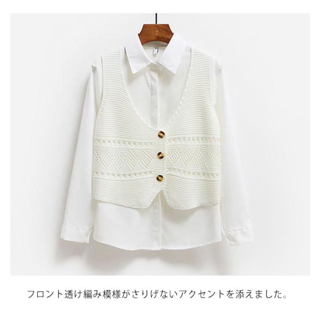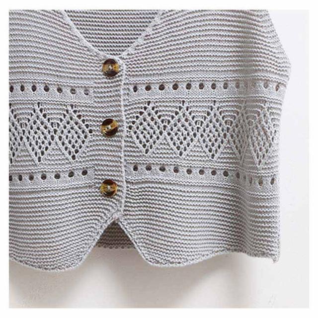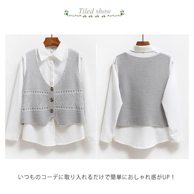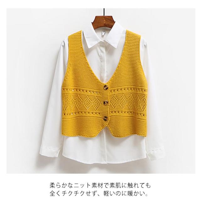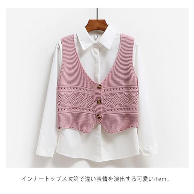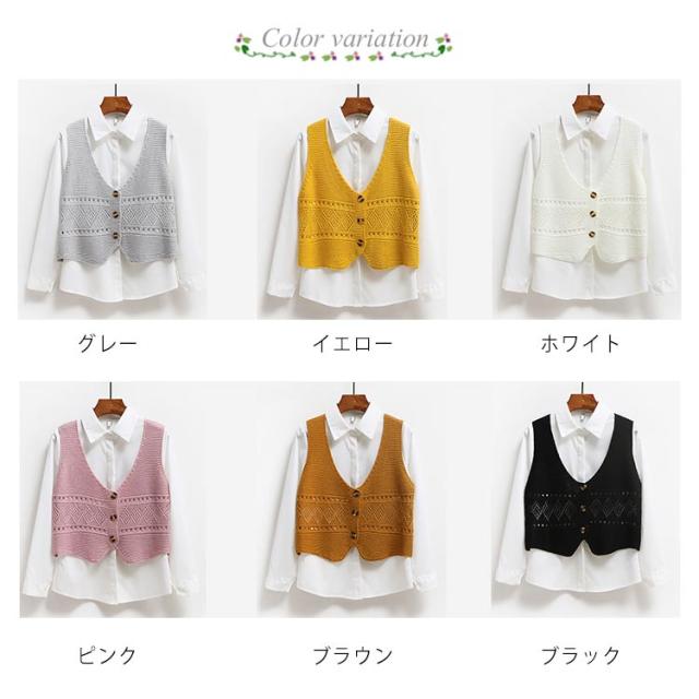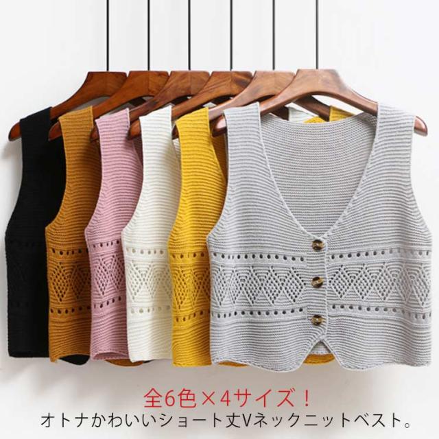 | 全6色×4サイズ!オトナかわいいショート丈Vネックニットベスト。 いつものコーデに取り入れるだけで簡単におしゃれ感がUP! フロント透け編み模様がさりげないアクセントを添えました。 柔らかなニット素材で素肌に触れても全くチクチクせず、軽いのに暖かい。 インナートップス次第で違い表情を演出する可愛いitem。 | |