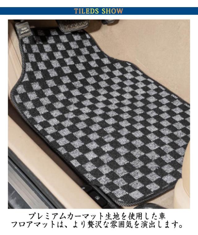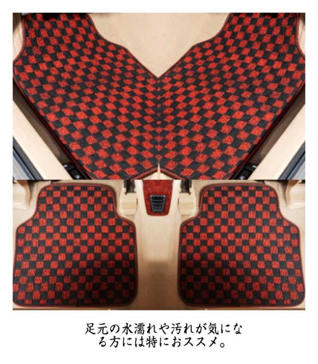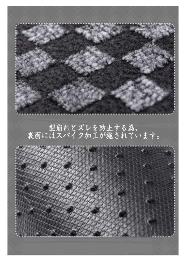 | 人気なチェック柄フロアマットセット。 プレミアムカーマット生地を使用した車 フロアマットは、より贅沢な雰囲気を演出します。 型崩れとズレを防止する為、裏面にはスパイク加工が施されています。 足元の水濡れや汚れが気になる方には特におススメ。 | |