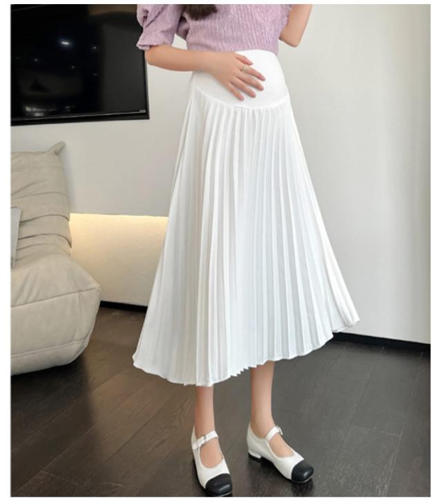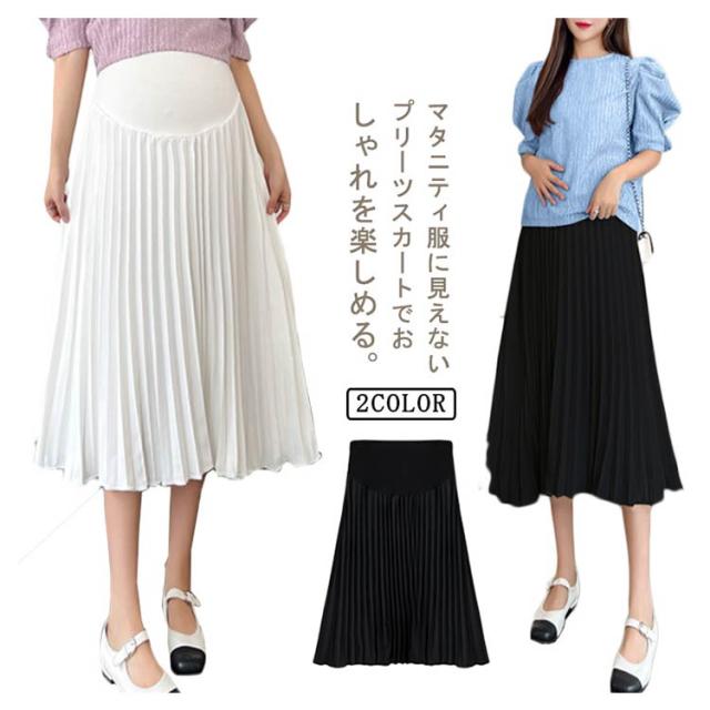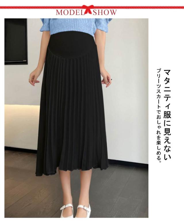 無地 Aライン 裏地付き マタニティスカート 産前産後使える レディース ウエスト調整 マタニティーウェア ミモレ丈 きれいめ 夏 プリーツロングスカート